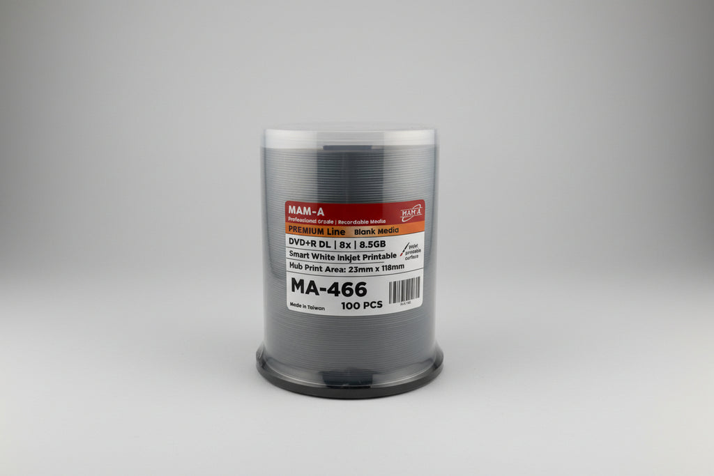MAM-A Premium Dual Layer Smart-White Inkjet DVD+R DLs deliver a superior white coat finish, optimized for crisp, vibrant inkjet printing. Designed for professional use, these discs combine excellent print quality with reliable performance.